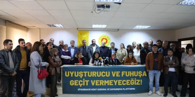 Diyarbakır’da faaliyet gösteren 85 sivil toplum, emek ve meslek örgütünün bir araya gelerek kurduğu platform adına açıklama yapan Diyarbakır Tabip Odası Başkanı Elif Turan, “Son yıllarda ülkenin birçok yerinde olduğu gibi kentimizde de maalesef uyuşturucu madde kullanımı ve fuhuş yaygınlaştığını gözlemlemekteyiz” dedi.