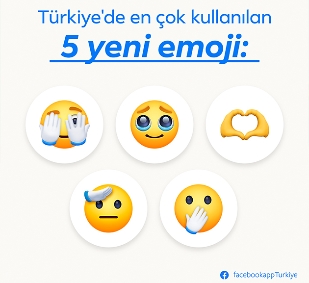 Türkiye genelinde son üç ayda oluşturulan Facebook gönderilerine bakıldığında Türkiye genelinde en çok kullanılan yeni emojiler kahkahaya boğulan emoji, gözetleyen surat emojisi ve kalp eller emojisi oldu.