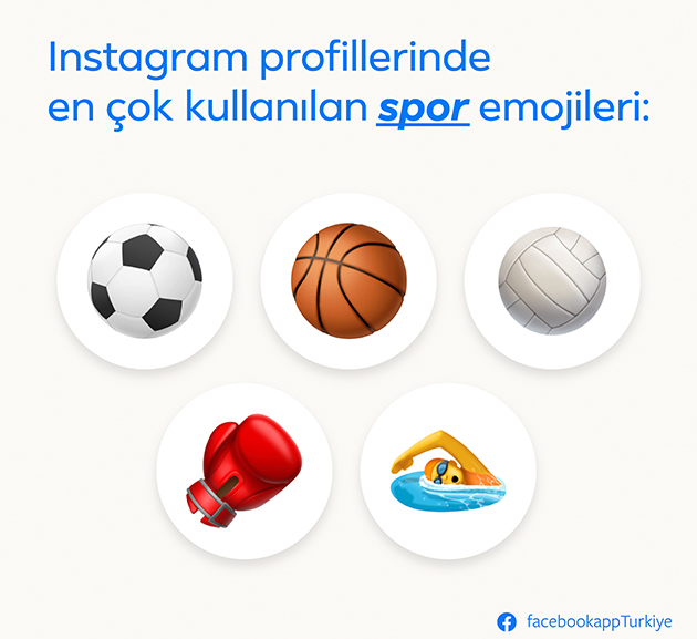 Instagram profillerinde en çok kullanılan spor ile ilgili emojiler ise futbol topu, basketbol topu, voleybol topu, boks eldivenleri ve yüzen insan emojisi oldu.