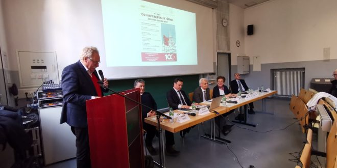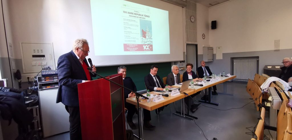 Türkiye Cumhuriyeti‘nin doğu batı arasındaki 100. Yılı LMU (Ludwig Maximilian Universitesi) Türkoloji Bölüm Başkalığınca düzenlenen Akademik Panelde, konuşmacılar Türkiye‘nin Osmanlıdan başlayarak günümüz Cumhuriyetinin 100. kuruluş yılına kadarki sosyal, ekonomik, eğitim konularında gelişimini ve kendi görüşlerini açıkladılar.
